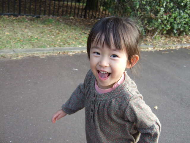 数日前から桃実の上の前歯が生えて来たかな?と思っていたのですがこの日散歩の途中でトイレに行った千尋とダンナさんを待っている間に桃実の歯を覗いたところ、1本しか生えていないと思っていた前歯が2本顔出していました。