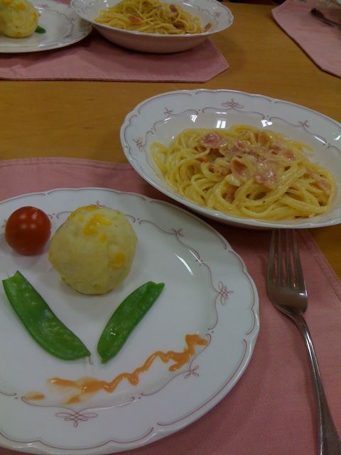 皆で協力して6人前のポテトサラダと6人前のカルボナーラを作ります。